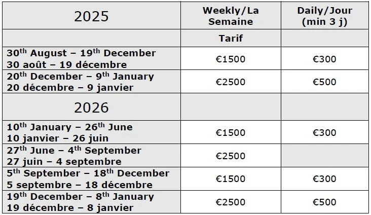 To make a booking or for any information, please do not hesitate to contact us by email or phone